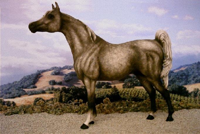 | This is also an example of an early Cheval Limited Edition horse. It is called "Arabian Stallion" and is a limited edition of 1500. I purchased it about 1996 and it is made from a rough stoneware, very unusual for Cheval. There is also an Arabian Mare and Arabian Foal to complete the family. |
