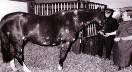 | Sefton's story is remarkable. I am old enough to remember the horror of the day when the IRA shocked the world with their terrorist bombing in Hyde Park: (story and photos courtesy of Wikipedia under the Fair Use laws) Sefton (1963–1993) was a British Army horse who served for 17 years from 1967 to 1984, coming to prominence when he was critically injured in the Hyde Park and Regent's Park bombings, which killed seven other horses, and four soldiers. He recovered sufficiently to return to active service and was subsequently awarded "Horse of the Year". Sefton became one of the first horses to be placed in the British Horse Society's equestrian Hall of Fame. Sefton's Story: On 20 July 1982 at 10.40am Sefton was en route to the traditional Changing of the Guard, with 15 other horses from his regiment. A car-mounted nail bomb planted by the IRA detonated on South Carriage Drive in Hyde Park, hitting the formation of horses and riders from the Blues and Royals. Two soldiers were killed on the scene, with two further soldiers dying of their wounds later. The blast injured all the horses, seven of them so badly that they were shot on the scene to relieve their suffering. Sefton and eight of his stablemates also sustained injuries, although Sefton's were the most serious of the surviving horses. A second explosion two hours later in Regent's Park killed another seven soldiers. Sefton's injuries were serious: they included a severed jugular vein, wounded left eye, and 34 wounds over his body. His rider Trooper Michael Pedersen noted that Sefton responded so competently that when the bomb exploded there was no chance of his being thrown. After dismounting, Pedersen, who was still in full state kit and in severe shock, could do little to help Sefton. The sound of the explosion alerted a number of soldiers still in the barracks, and many of them ran to the scene, including regimental commander Andrew Parker Bowles and veterinary officer, Major Noel Carding. Another soldier, on orders from the officers, took off his shirt and used it to apply pressure to Sefton's severe neck wound. Due to the severity of his wounds, Sefton was led in to the first horsebox to arrive on scene, where he was driven to the barracks along with Major Carding, Farrier-Major Brian Smith and three other troopers holding Sefton. Carding ordered the horsebox to the forge, rather than the stables, due to its proximity. Here, Carding began 90 minutes of emergency operation to save Sefton's life – the first of the British Army's veterinary officers to operate on war-like wounds to a cavalry horse in more than half a century – whilst also directing care of the other wounded horses prior to the arrival of civilian vets to assist. Carding, the civilian vets, farriers and troopers managed to save all of the horses who were brought back to barracks from the explosion scene. Sefton endured 8 hours of surgery – a record length for horse surgery in 1982. Each of his 34 wounds were potentially life-threatening; some included dislodging shrapnel from bone. That evening after surgery the veterinary surgeons gave him a 50/50 chance of surviving the shock and extreme blood loss. Over the next months he made continual progress and his nurse was quoted "He took everything in his stride". During his time in the hospital he received huge quantities of cards and mints; donations reaching almost $1,000,000 were collected to construct a new surgical wing at Royal Veterinary College which was named the Sefton Surgical Wing. Sefton returned to his duties with his regiment, and he often passed the exact spot where he had received such horrific injuries. That year he was awarded Horse of the Year, and with Pederson back in the saddle took centre stage at the Horse of the Year Show, to a standing ovation. On 29 August 1984 Sefton retired from the Household Cavalry, and moved to the Home of Rest For Horses at Speen, Buckinghamshire where he lived to the age of 30 before having to be put down on 9 July 1993 due to incurable lameness as a complication of the injuries suffered during the bombing. |