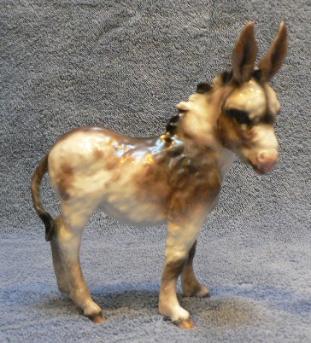 | This is the Kaiser standing donkey sculpted by Giuseppe Tagliariol (aka "Bepe Tay"). On the left is the decorated OF version; on the right is a custom glazed example done by Lyne Raff. This mold is also offered in plain white. |