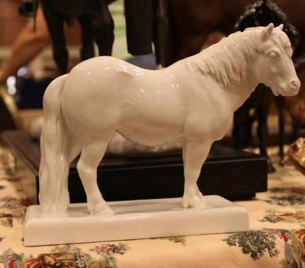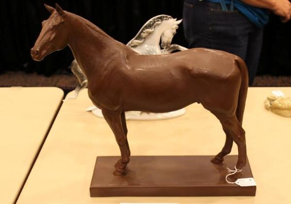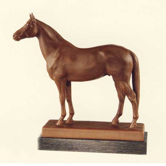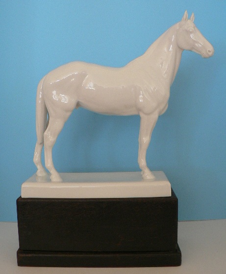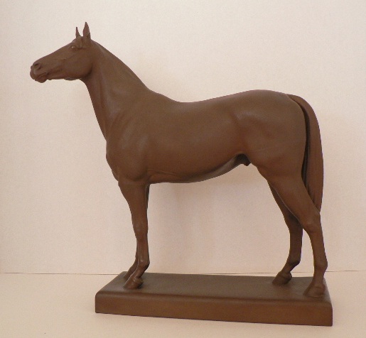 | This was a potrait sculpture. Packard was a German warmblood, probably Hanoverian. His based is marked with his sire and dam: Gee by Rarsee I out of A.D. Spaza by Schwabenpreis. |