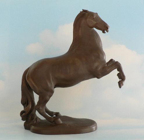 | Meissen Rearing Stallion in Boettger Steinzeug (red clay stoneware) sculpted by Paul Scheurich in 1937. |