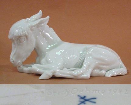 | Braying Donkey sculpted by Erich Hosel about 1940 produced in boettger steinzeug |