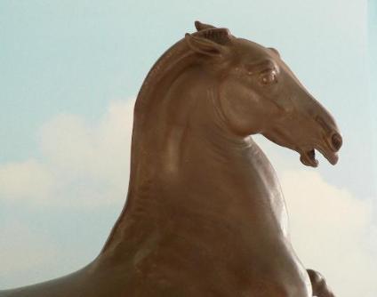 | This is a portrait sculpture done by Erich Oehme. Grande was a 1948 German Thoroughbred racehorse whose sire was Ticino and whose dam was Grossularia by Aurelius. Ticino won the German Derby in 1942. |