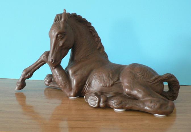| Lying Foal, licking his foreleg sculpted by Willi Münch-Khe in 1928. in boettger steinzeug |
