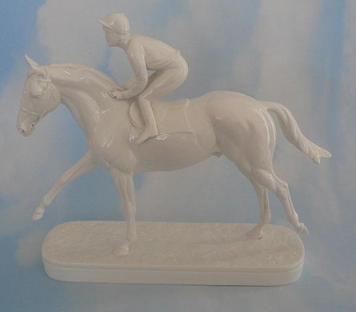 | RW3982 "Grundy with Pat Eddery Up" sculpted by Doris Lindner Ltd Ed of 500 released in 1976. This is a white gloss mold standard sold as part of a Royal Worcester warehouse dispersal through Horsing Around. |