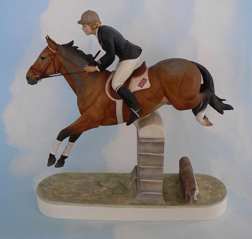| RW3872 "Stroller & Marion Coates" sculpted by Doris Lindner Ltd Ed of 750 released in 1968. Stroller was a member of the British team who competed in the 1968 Olympics in Mexico, ridden by Marion Coates. Bill Steinkraus and Snowbound won the Gold Medal while Marion and Stroller won the Individual Silver Medal, only four faults behind Steinkraus. Stroller jumped one of the only two clear rounds in the Olympic individual championship. In 1967, Marion rode 14.1 hh Stroller to victory in the Hickstead Derby, the only pony to have ever won this event. Stroller was the grand age of 20 when he won the 1970 Hamburg Derby. The pair won 61 international competitions. |