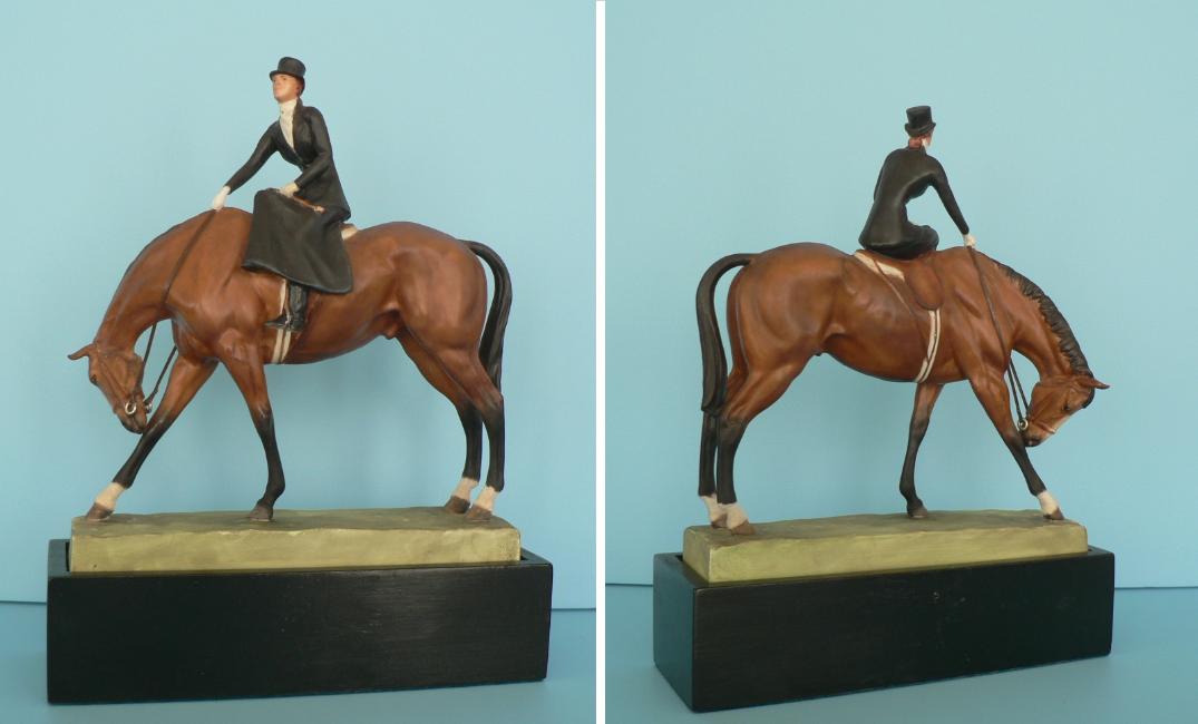 | RW3114 "At The Meet" sidesaddle foxhunting lady sculpted by Doris Lindner Open Ed released in 1935. |