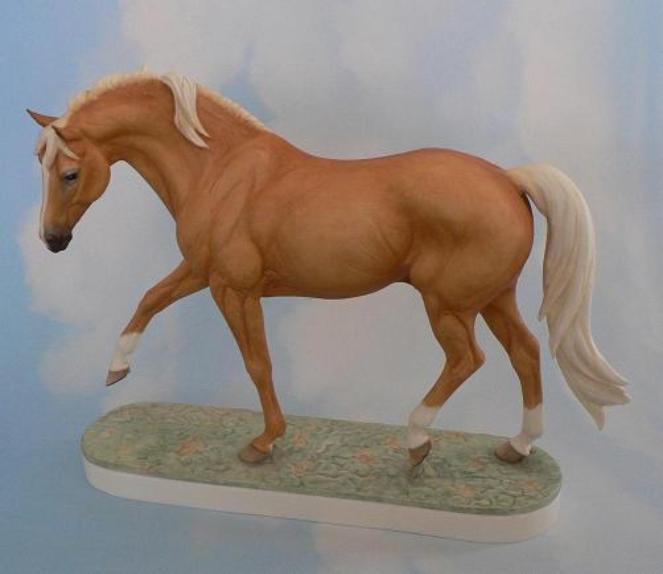 | RW3882 "Palomino" sculpted by Doris Lindner Ltd Ed of 750 released in 1971. This is an example of an early number where the left rear hoof is attached to the base with a tuft of grass. |